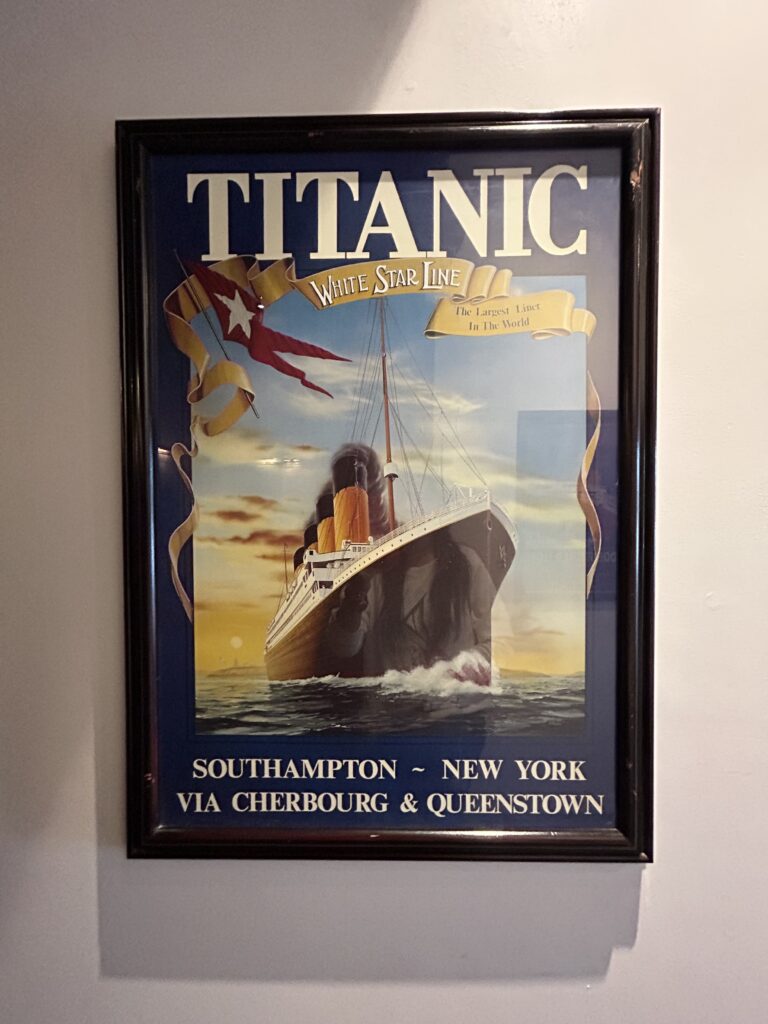 This framed tribute shows the real faces of Titanic’s orchestra—the brave musicians who famously played until the very end. Seeing them in the movie was already emotional, but standing in front of their actual photos? Perhaps one of the most heartbreaking moments in the movie for me is watching everyone flee in panic while the orchestra continues to play. Their calm presence amidst the chaos, knowing what’s coming, is both haunting and deeply moving. They played until the very end—and that scene will forever stay with me.